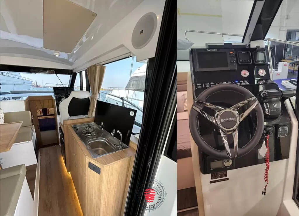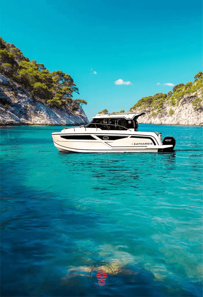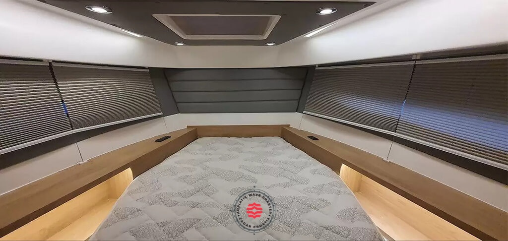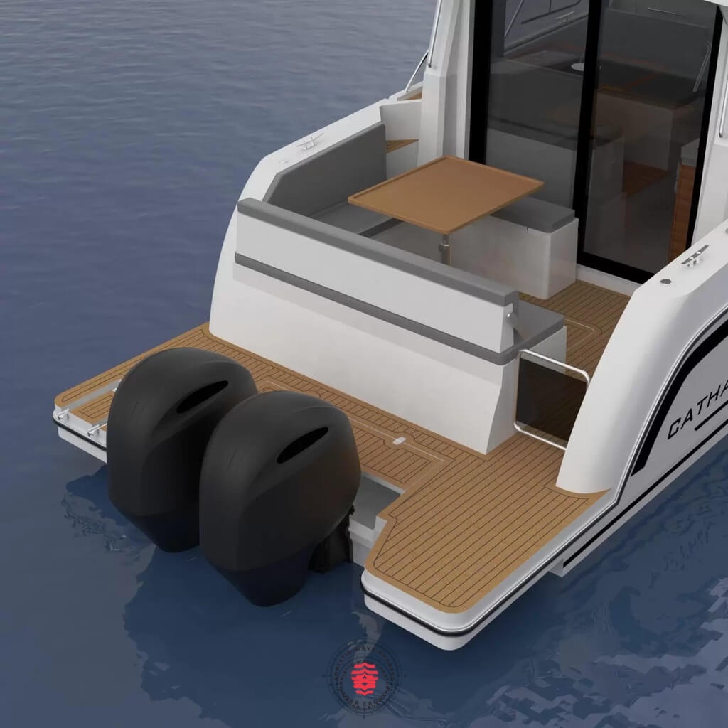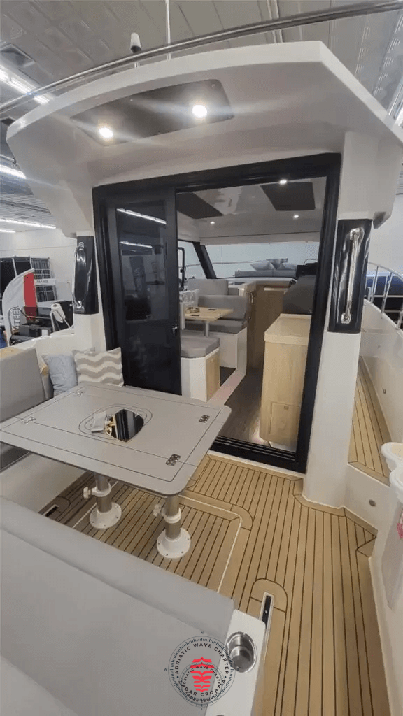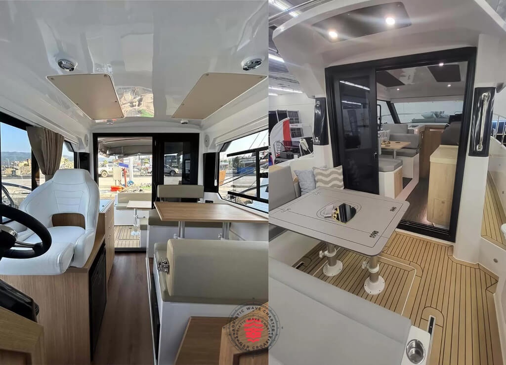 Inside, the Catharsis 930 offers a welcoming and practical layout, ideal for spending extended time on board. Natural light, efficient use of space, and carefully selected materials create a comfortable and private atmosphere rarely found in this segment.